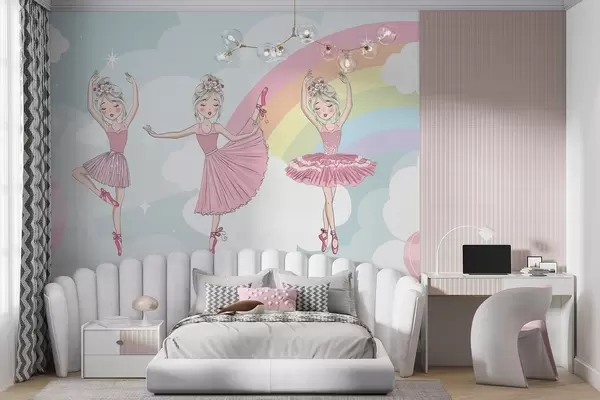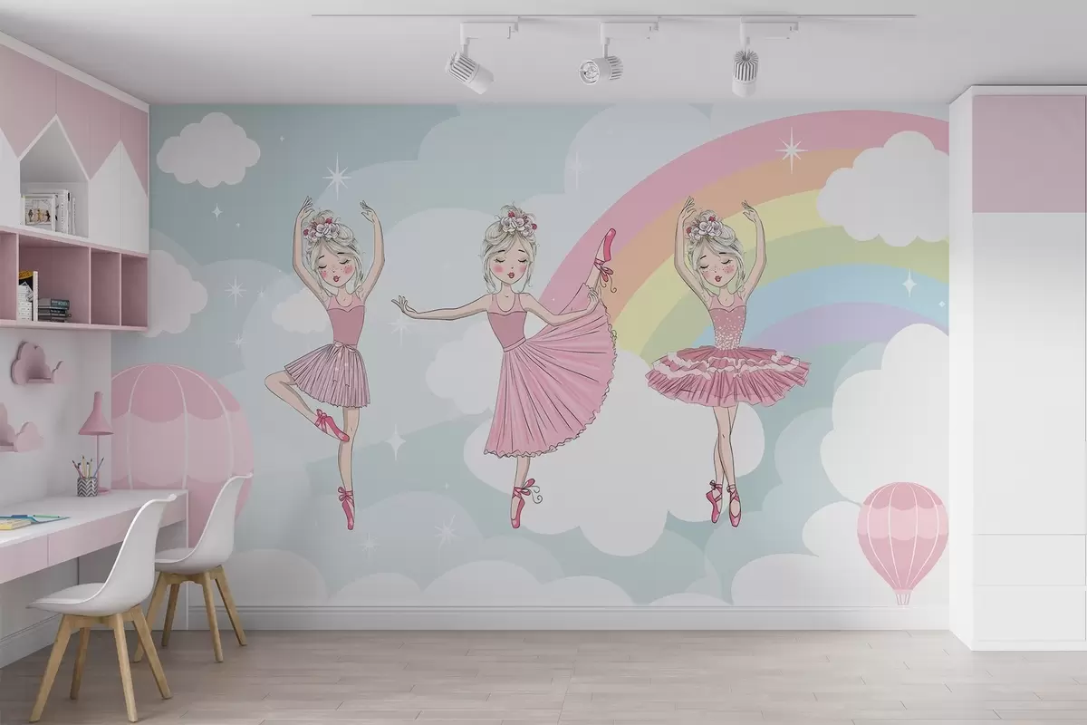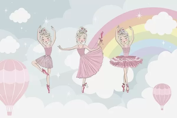 Fototapeten Prinzessinnen vor dem Hintergrund des Himmels und des Regenbogens N° w04907