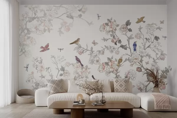 Fototapeten Vögel in der Nähe von Zweigen mit Blüten N° w04939