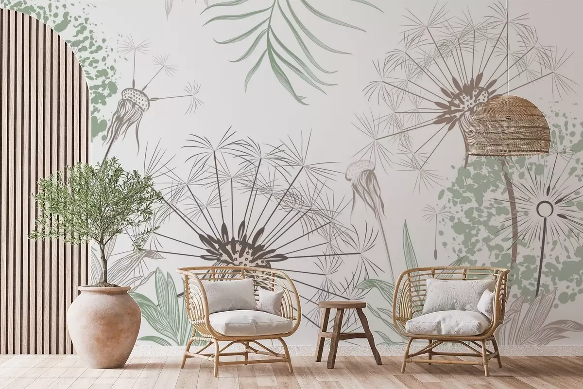 Fototapeten Löwenzahn zwischen den Blättern N° w04942v1