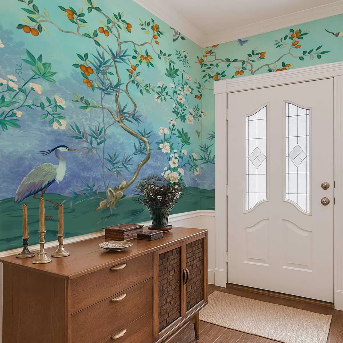 Sie können die Tapete sehr vorsichtig mit einem leicht feuchten Schwamm reinigen. Wir raten jedoch davon ab, die Tapete zu schrubben oder Reinigungsmittel zu verwenden, da dies die Oberfläche und die Farben der Tapete beschädigen kann.