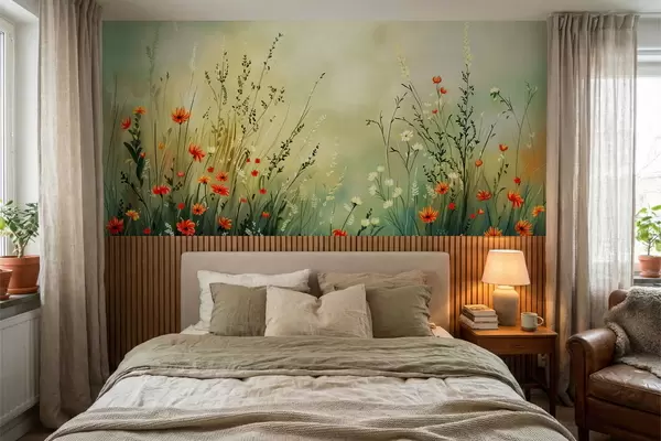 Fototapeten Wiesenblumen und Gräser in sanftem, malerischem Stil N° w05015
