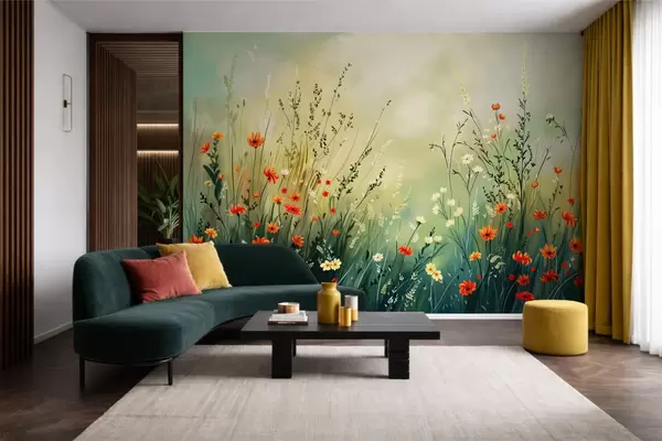Fototapeten Wiesenblumen und Gräser in sanftem, malerischem Stil N° w05015