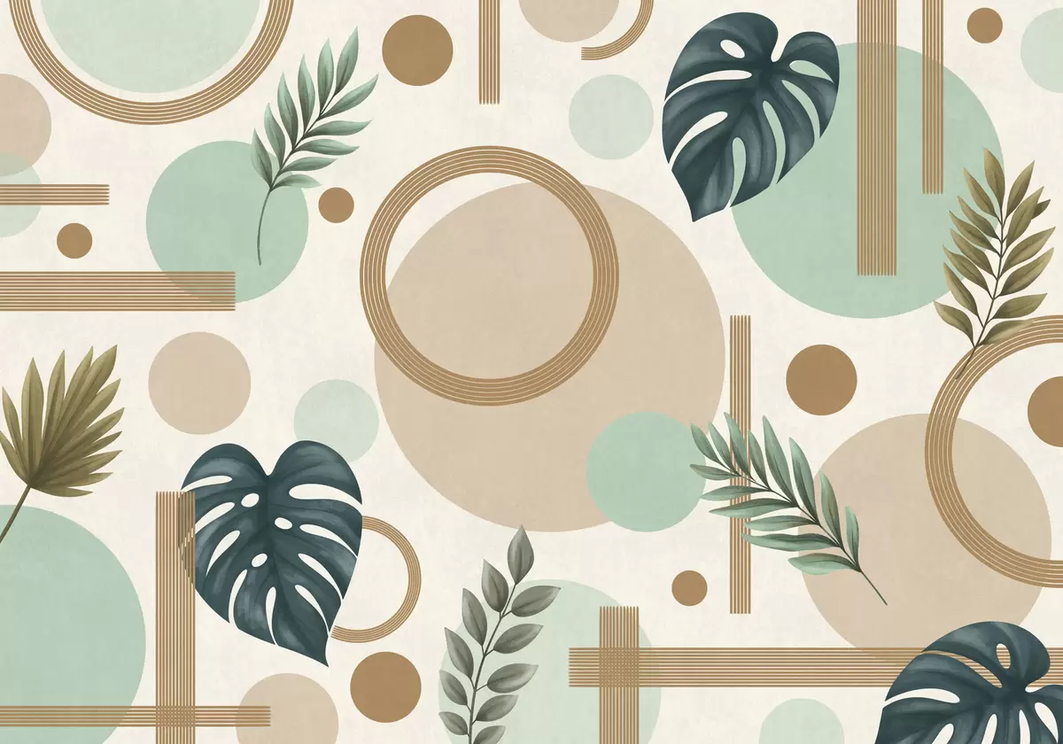 Fototapeten Geometrisches Muster mit Blättern in Grüntönen N° w05018v1