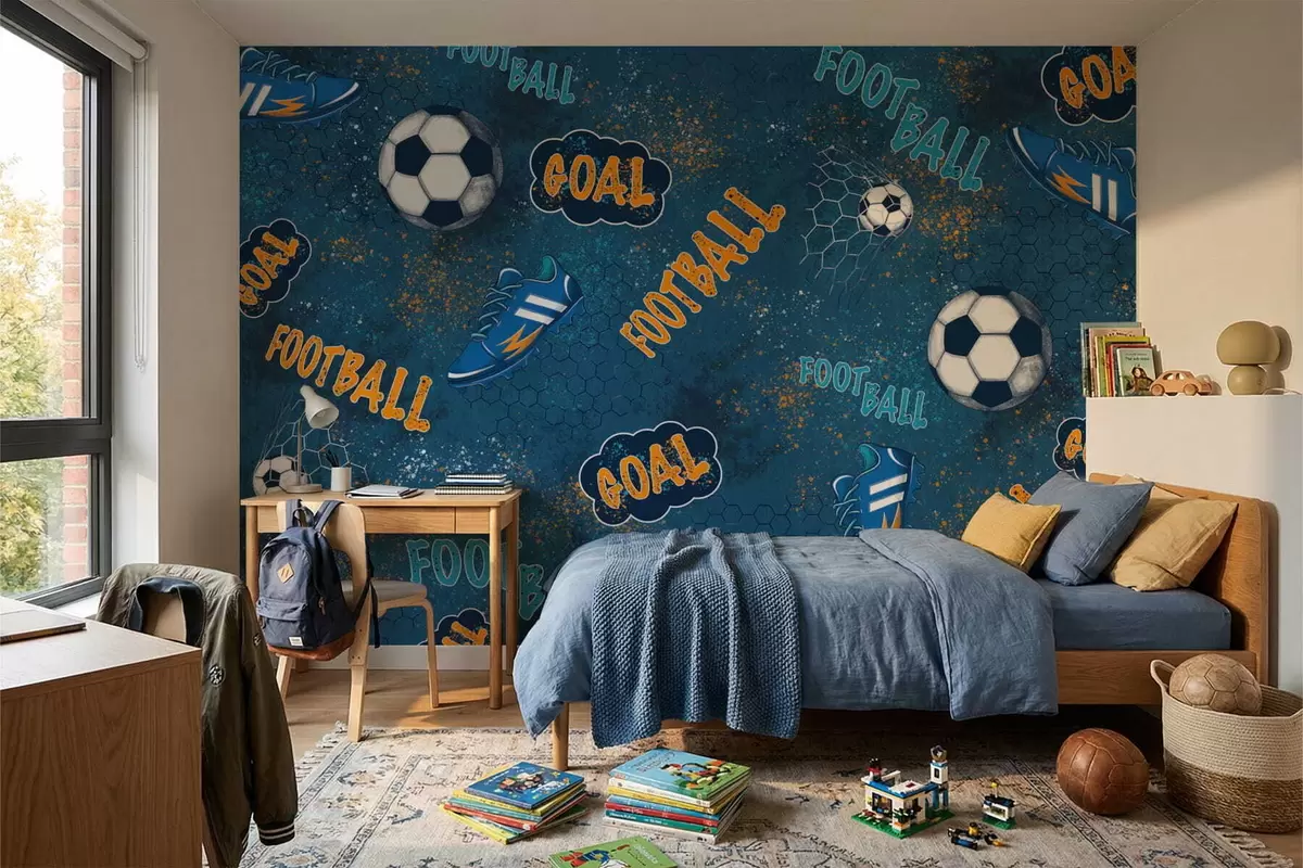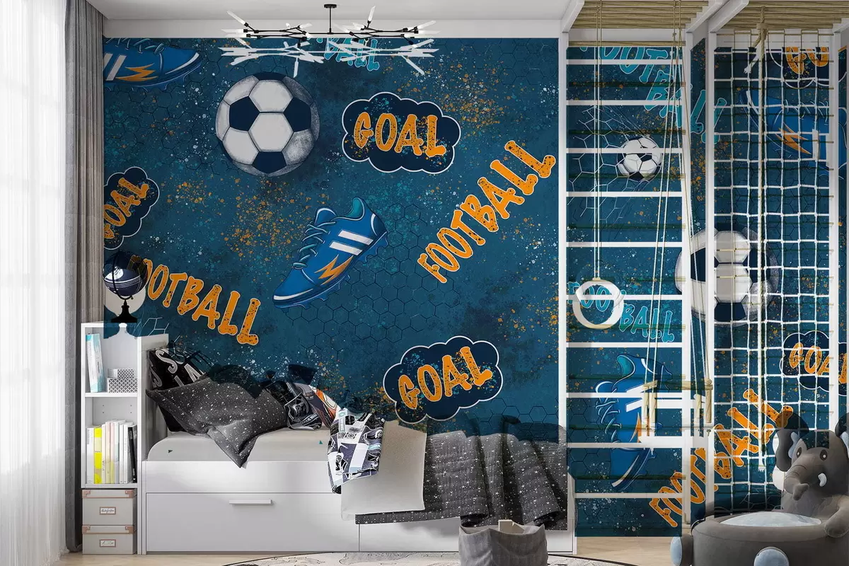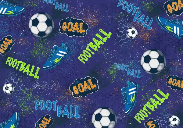 Fototapeten Kindermuster mit Bällen, Schuhen und sportlichen Begriffen N° w05037