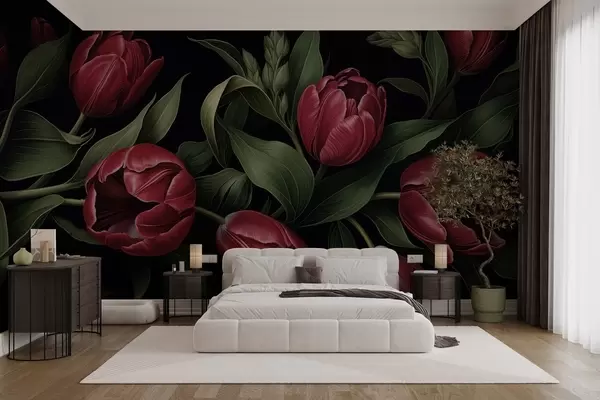 Fototapeten Rote Tulpen der Nacht N° w05047