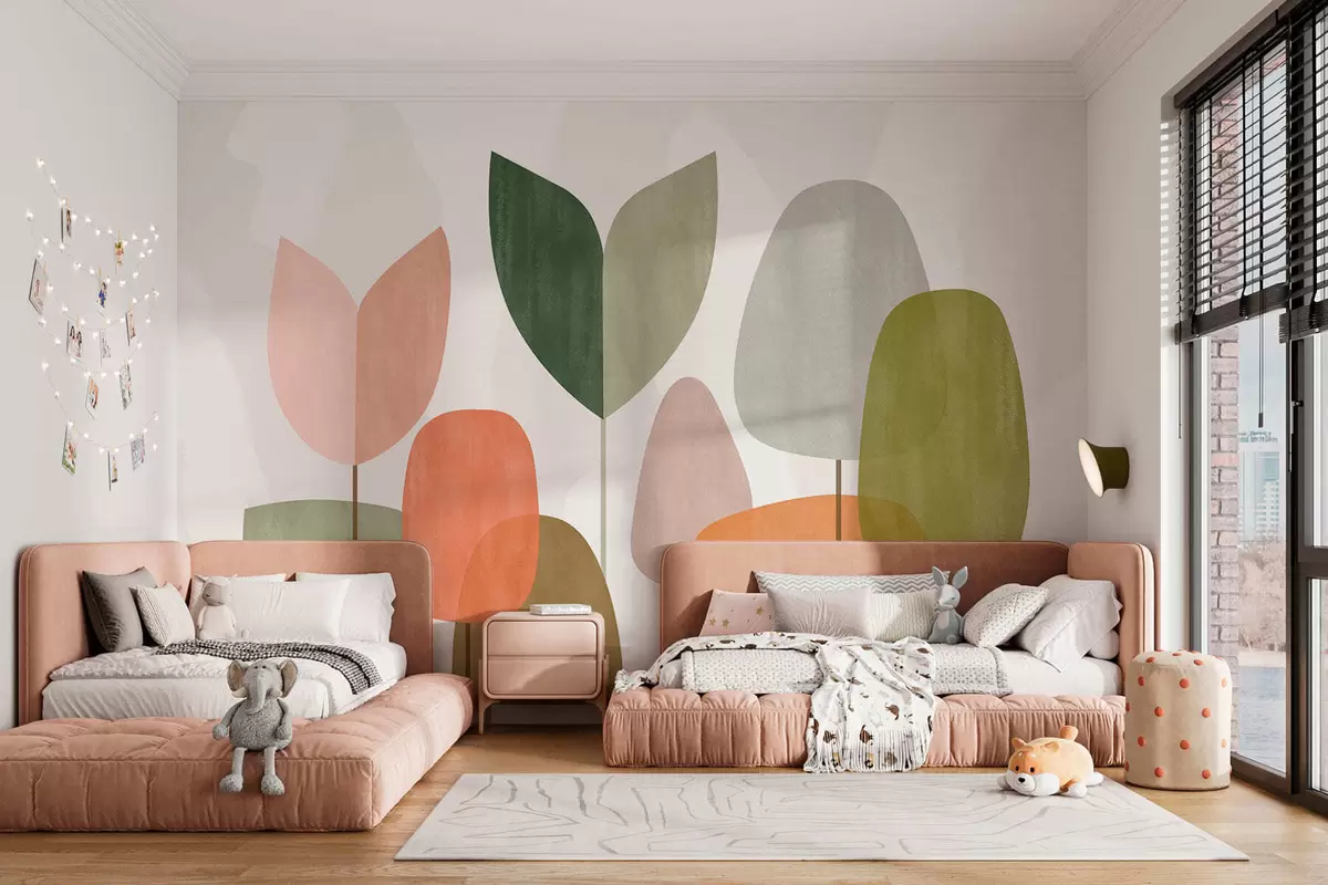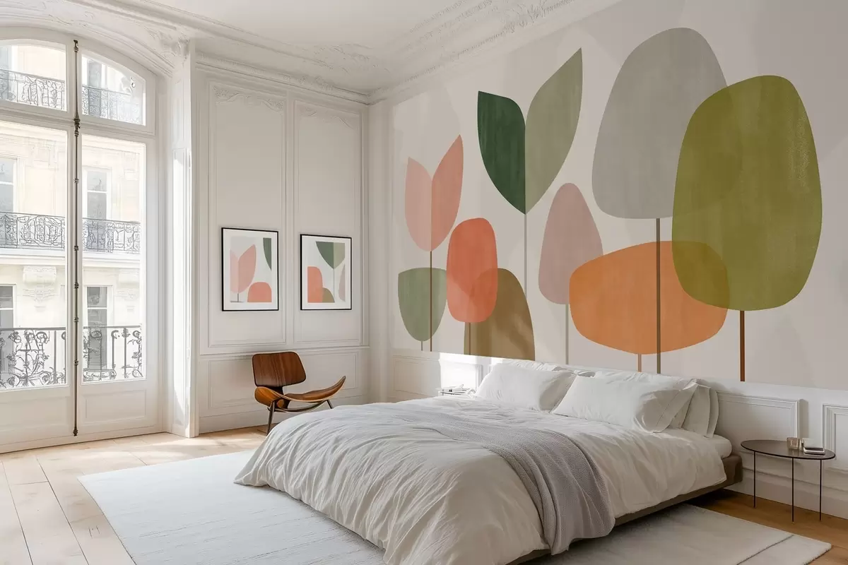 Fototapeten abstrakte Bäume in einem naiven Stil N° w05059