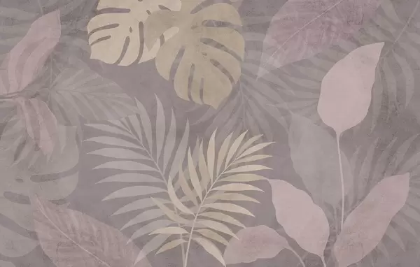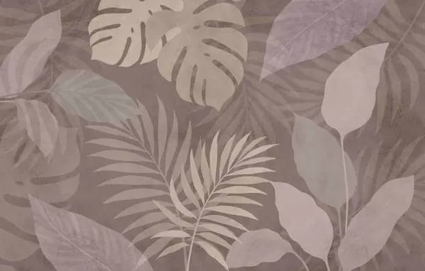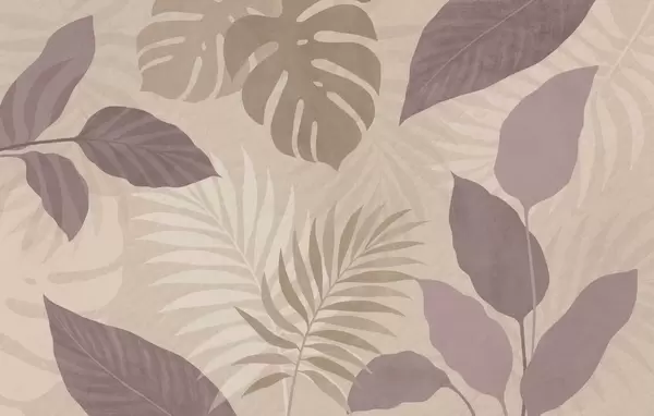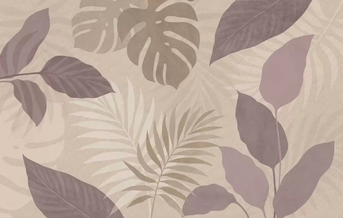 Fototapeten strukturierte tropische Blätter auf sandigem Hintergrund N° w05063