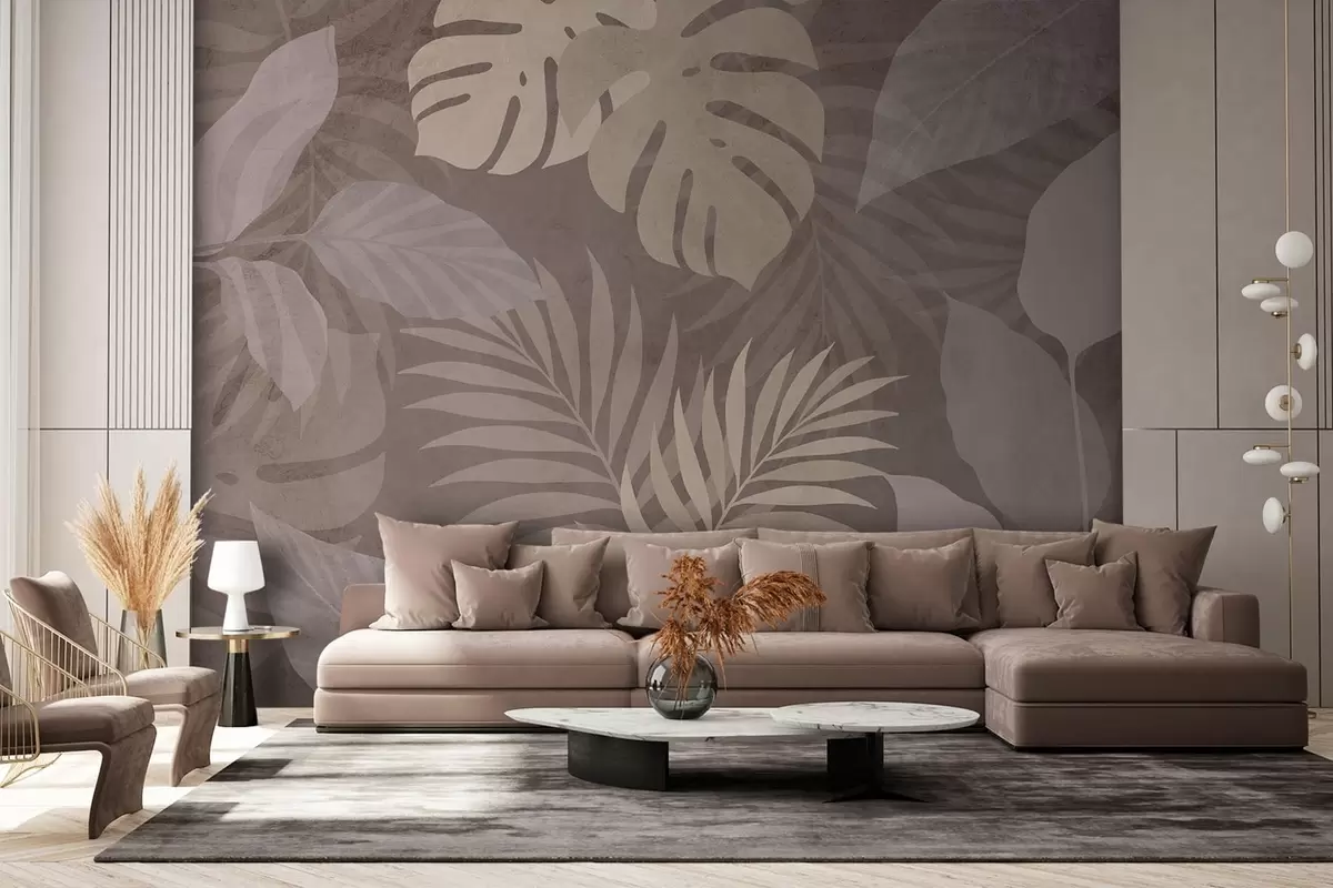 Fototapeten strukturierte tropische Blätter auf schokoladenbraunem Hintergrund N° w05063v2