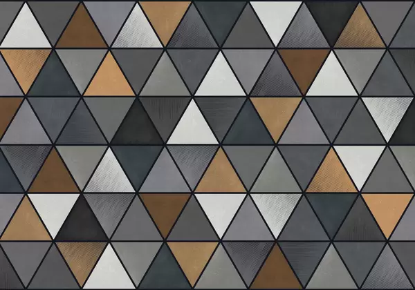 Fototapeten Dreieckiges geometrisches Muster in Blau- und Warmtönen N° w05095