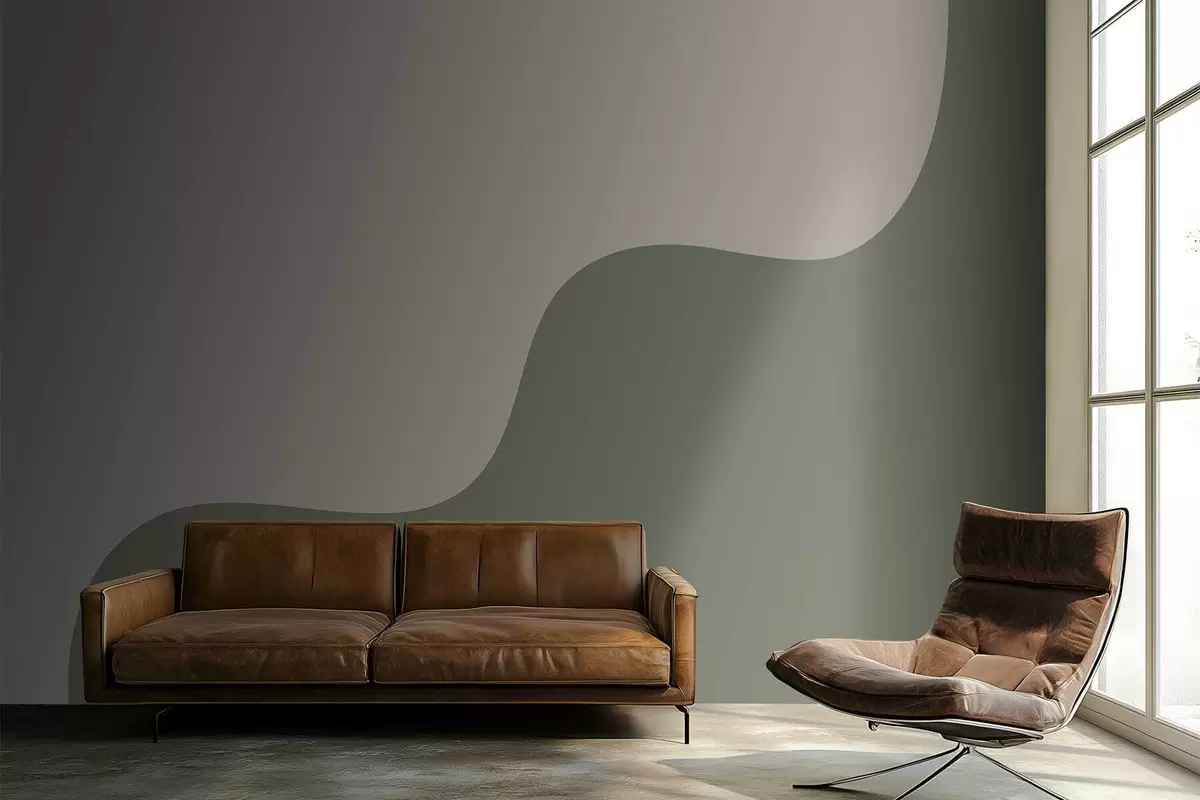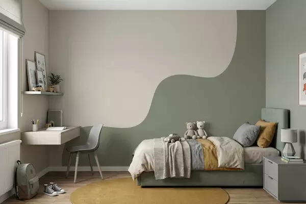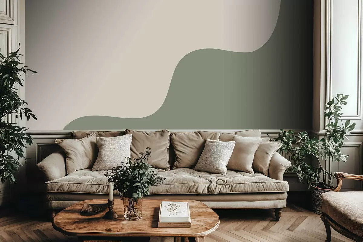 Fototapeten Geschmeidige abstrakte Formen in hellbeigen und grünen Farbtönen N° w05097