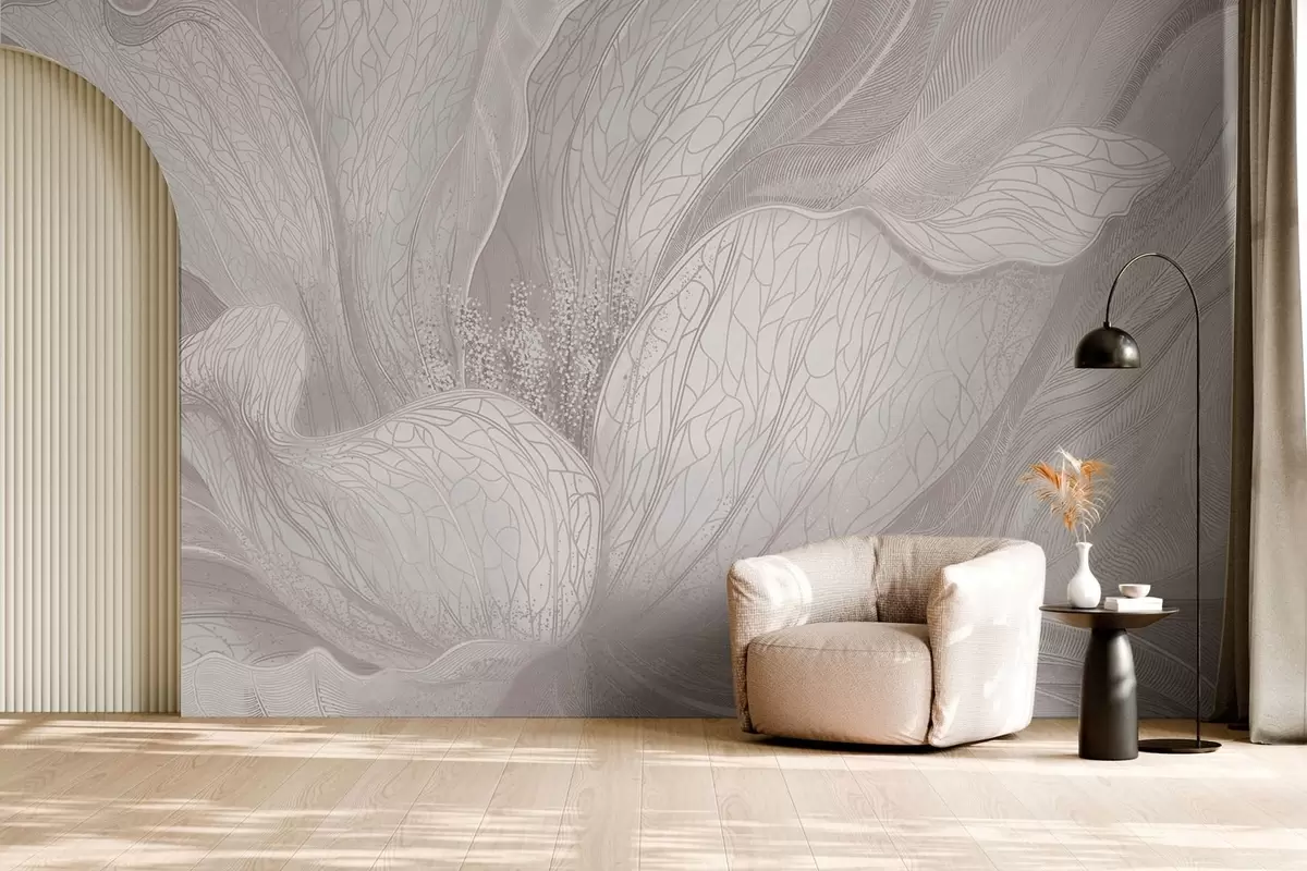 Fototapeten Leichte, abstrakte Blume mit fließenden Linien N° w05119v3