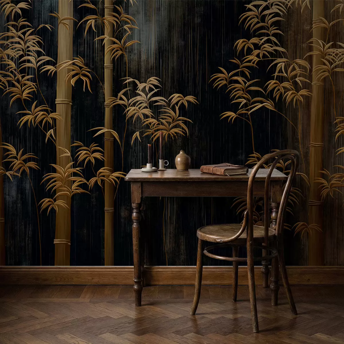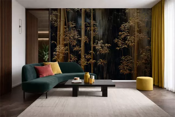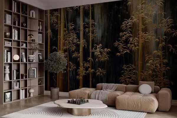 Fototapeten Dunkler Bambus auf schwarzem Hintergrund N° w05120
