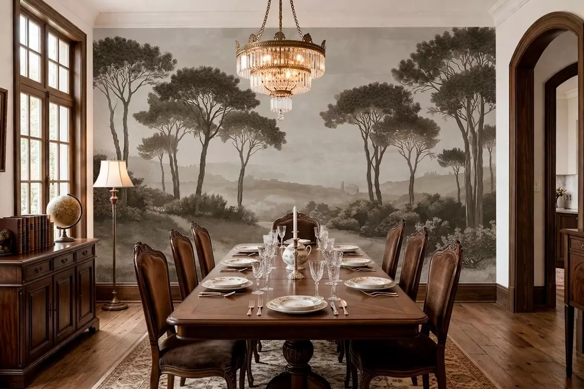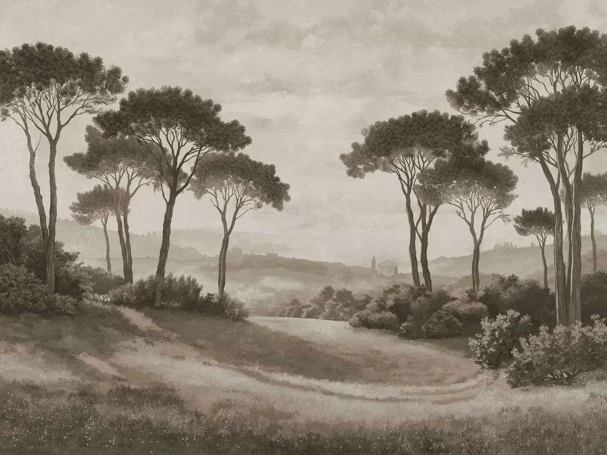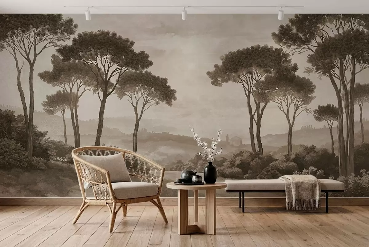 Fototapeten Landschaft mit Bäumen in Vintage-Sepia-Tönen N° w05122v2