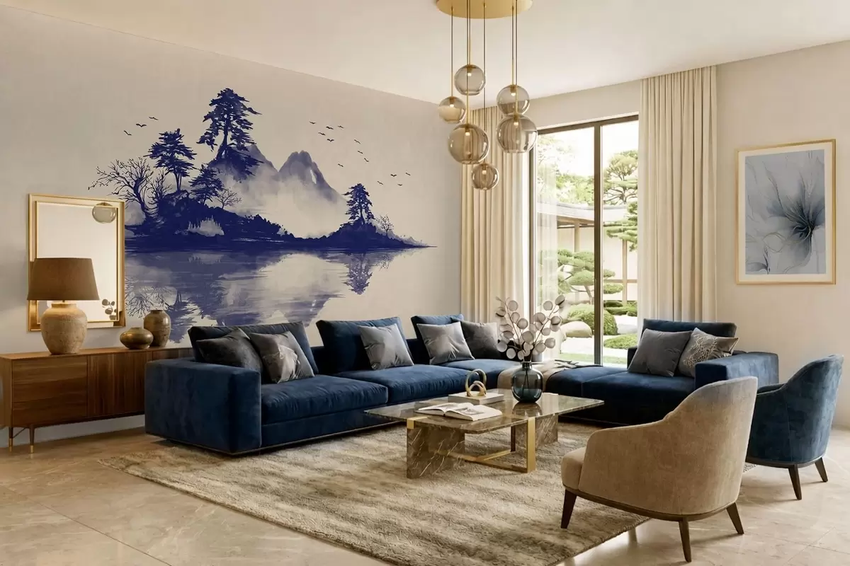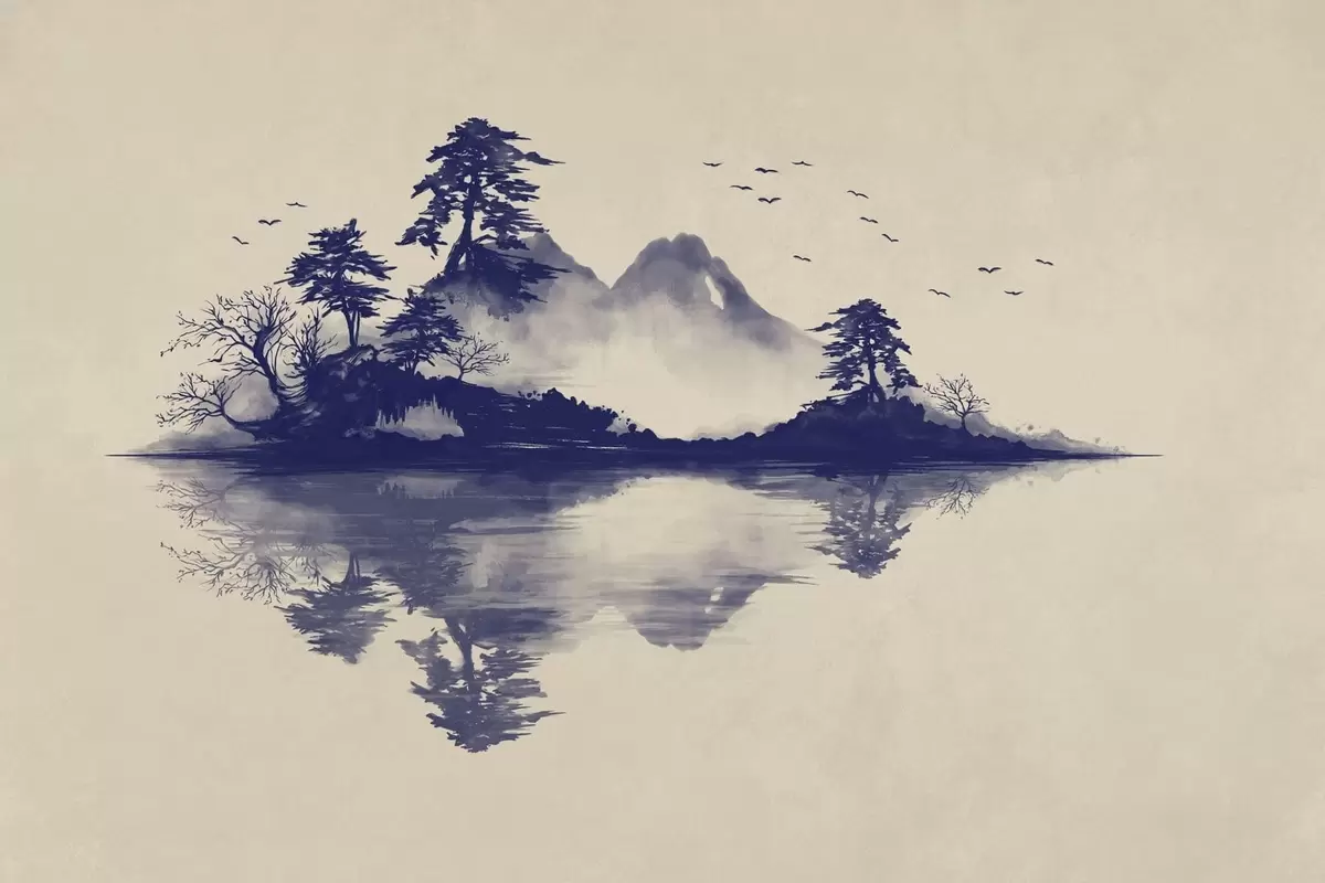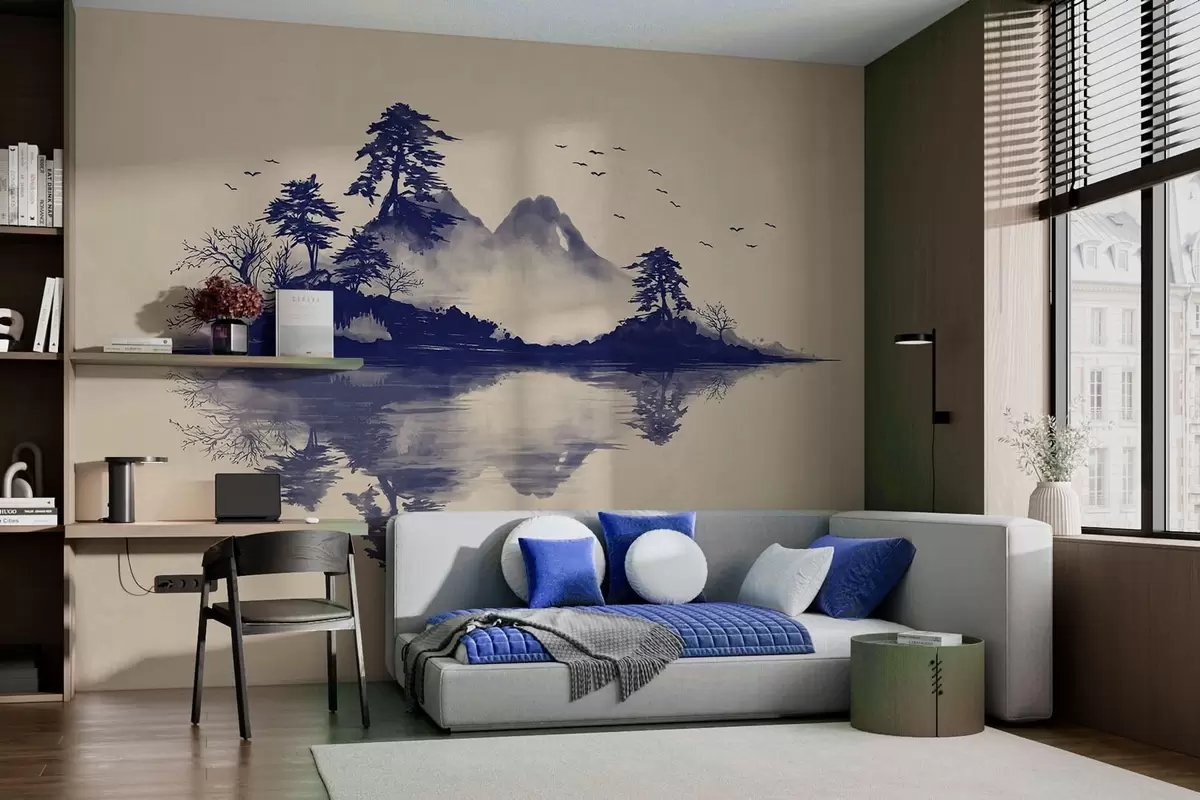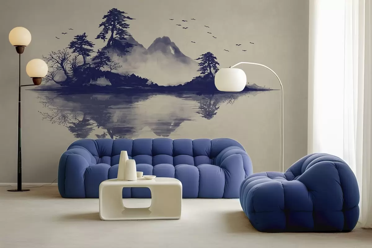 Fototapeten Sumi-e-Berglandschaft in Blautönen N° w05124v2