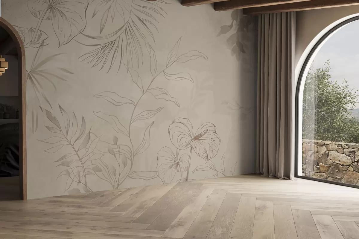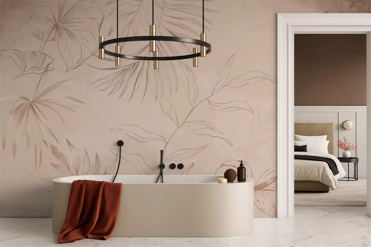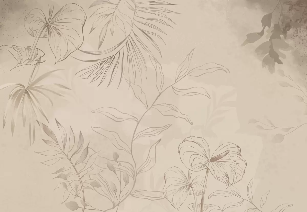Fototapeten Lineare Pflanzen auf strukturiertem beigem Hintergrund N° w05128