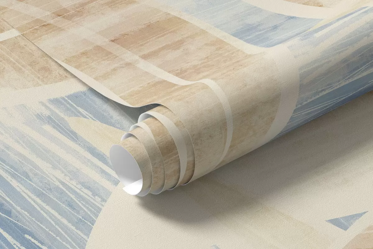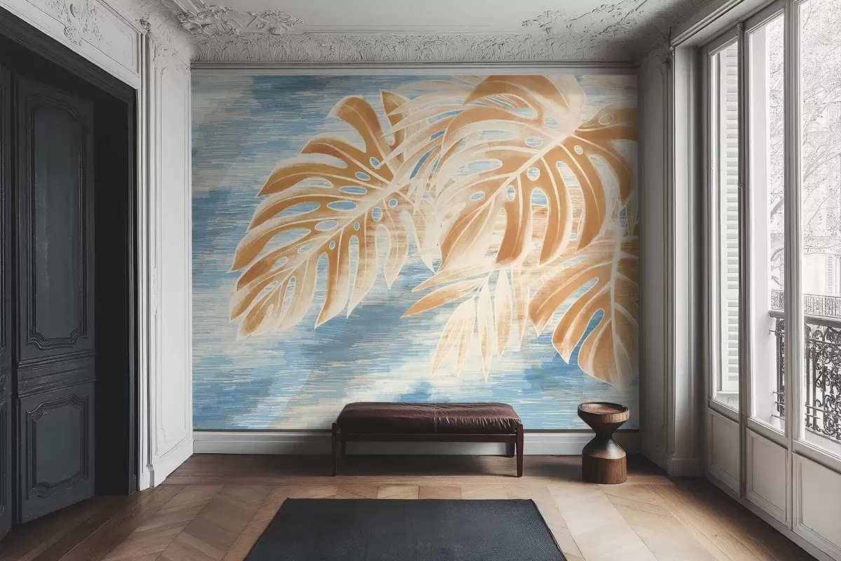 Fototapeten Blätter in hellen Sandtönen auf blauem Hintergrund N° w05130v1
