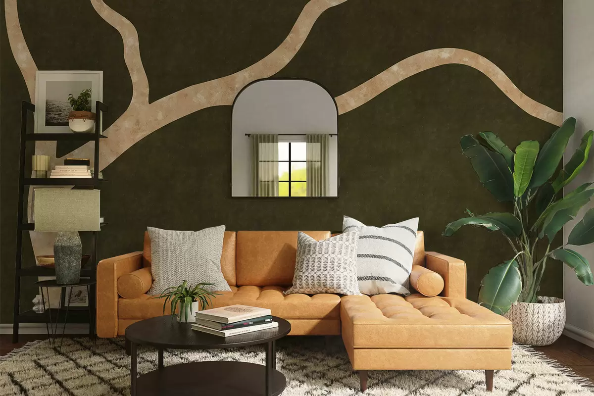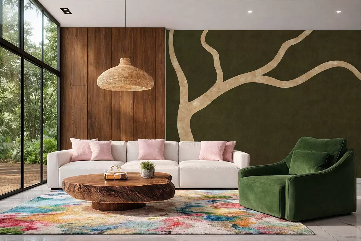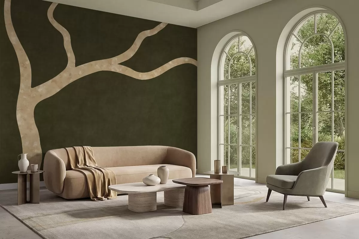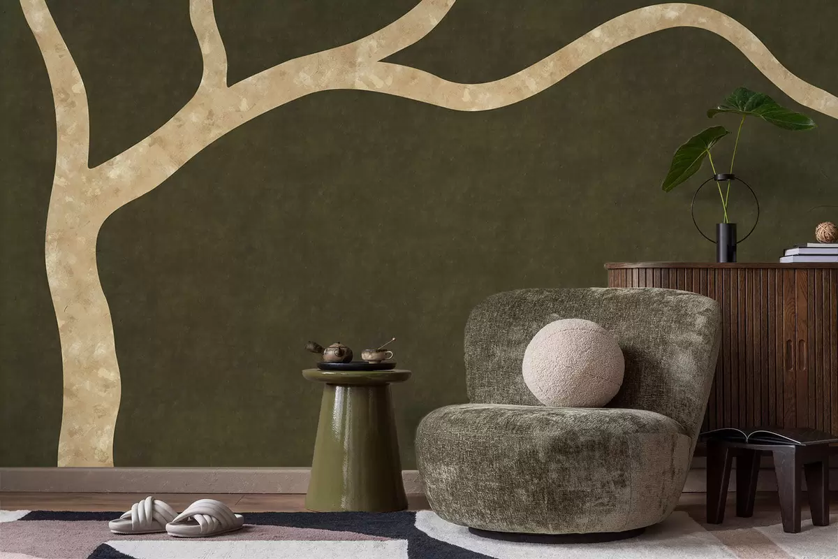 Fototapeten Heller Ast auf olivfarbenem Hintergrund N° w05144v2
