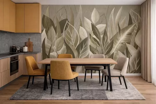 Fototapeten Abstrakte Blätter in Beige- und Grüntönen N° w05148