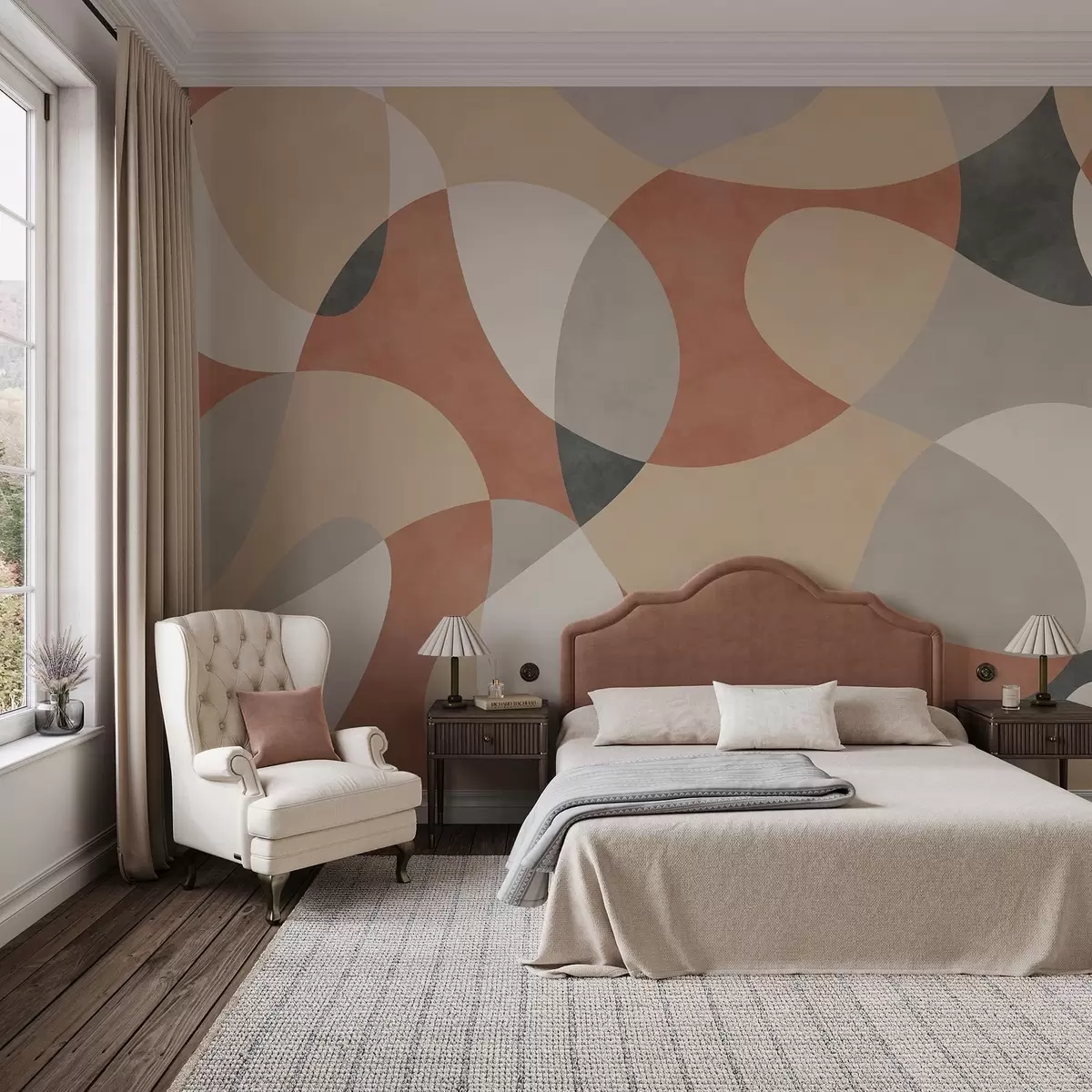 Fototapeten Abstraktes Muster mit abgerundeten Formen in warmen Farbtönen N° w05149v1