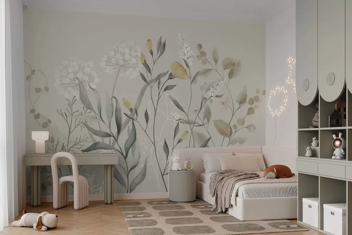 Fototapeten Pflanzen mit gelben Akzenten auf hellem Hintergrund N° w05154v1