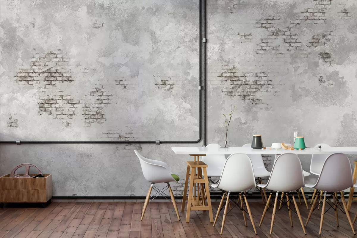 Fototapeten Grunge-Putzstruktur mit freiliegenden Ziegelstücken N° w05161
