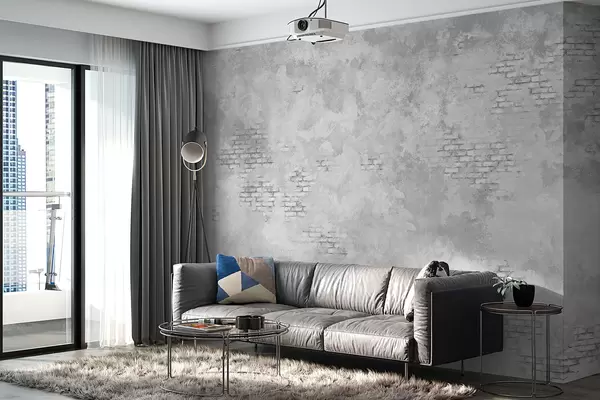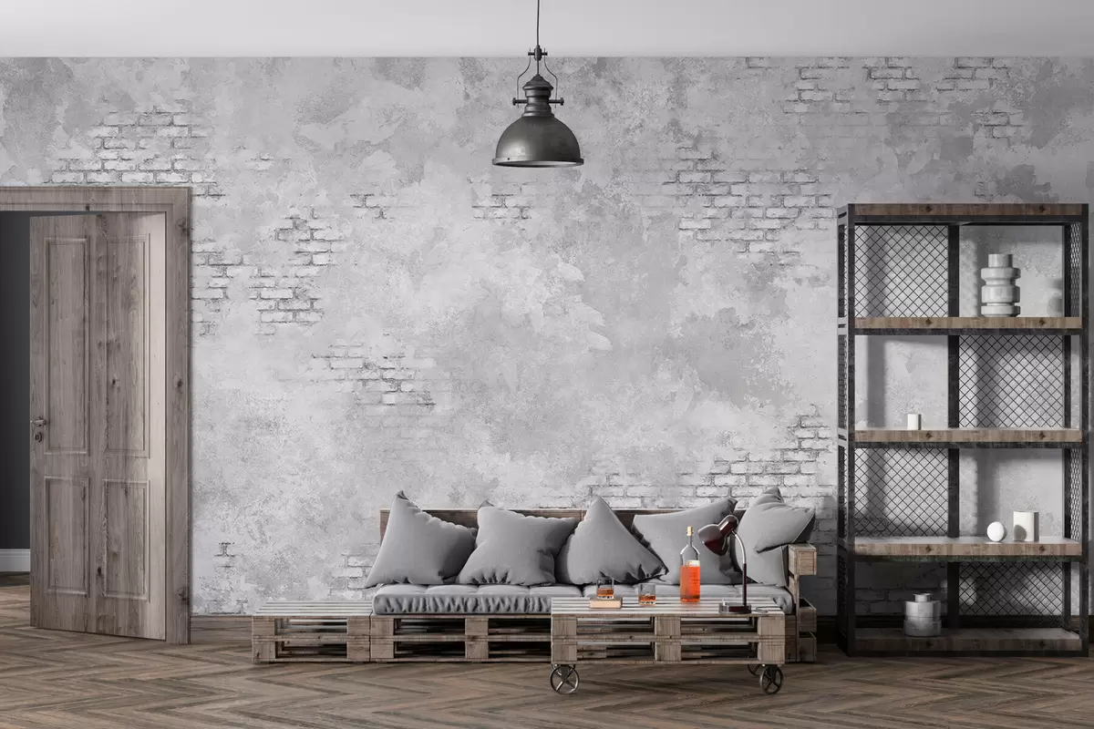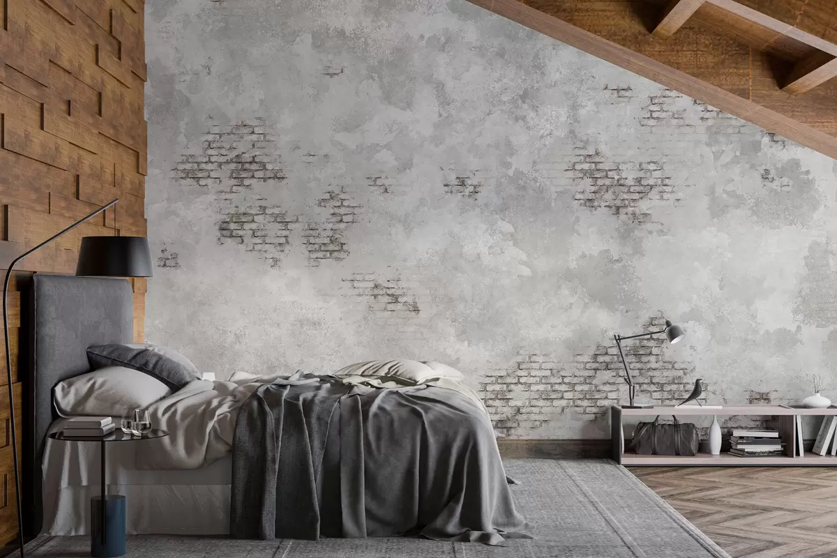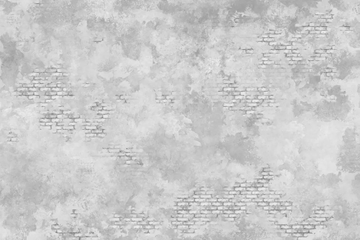 Fototapeten Grauer Putz im Grunge-Stil mit freiliegenden Ziegelstellen N° w05161v2