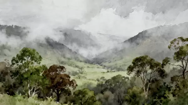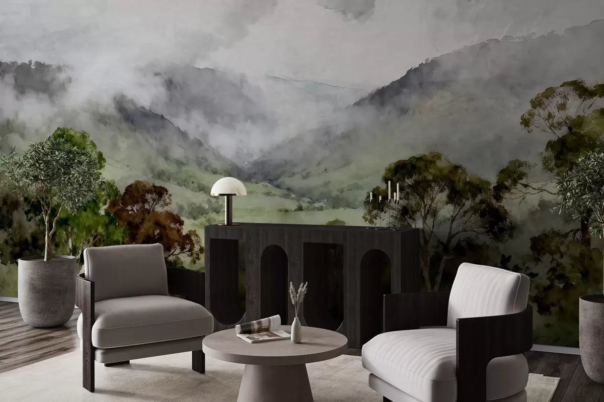 Fototapeten Gemalte Landschaft im Nebel N° w05185