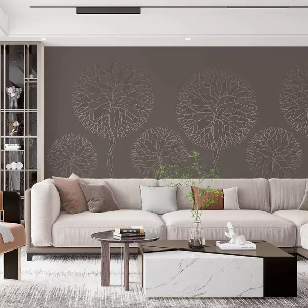 Fototapeten Fantastische lineare Bäume mit üppigen Kronen in eleganten Mokkatönen N° w05213v1
