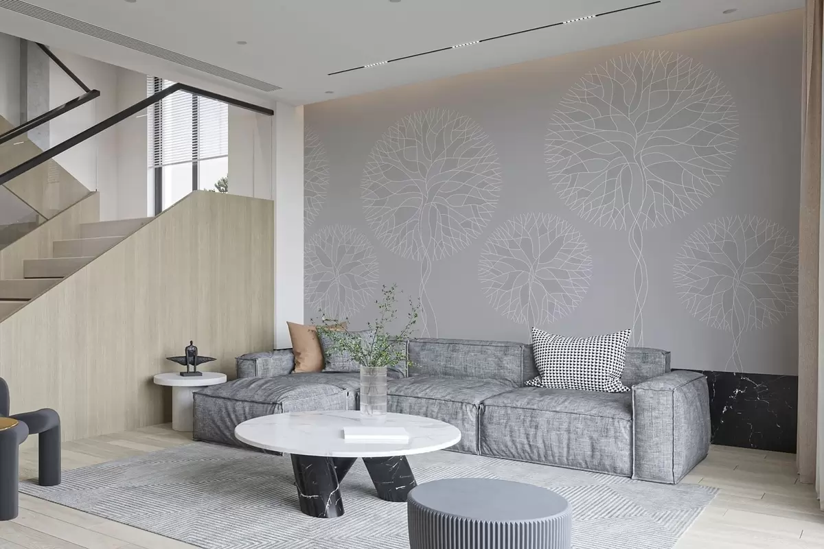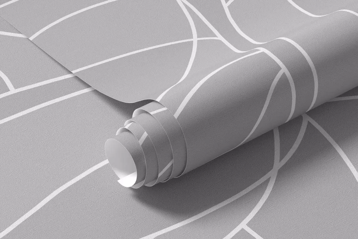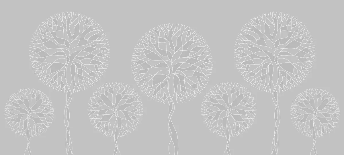 Fototapeten Fantasievolle lineare Bäume mit üppigen Kronen in hellen Grautönen N° w05213v4