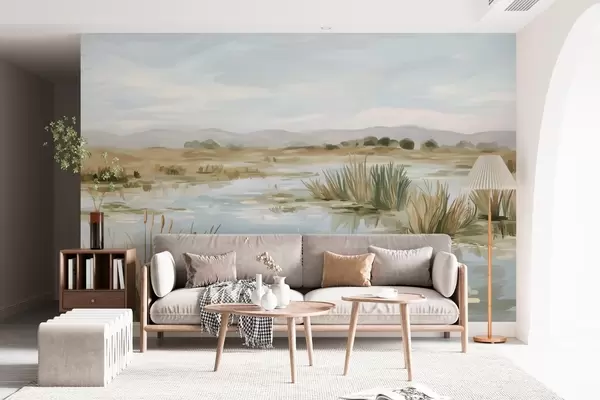 Fototapeten Ruhiger, friedlicher See in malerischer Landschaft N° w05214