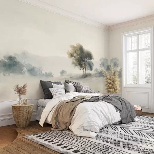 Fototapeten Ruhige Landschaft mit einem Baum und sanften, verschwommenen Formen N° w05223v1
