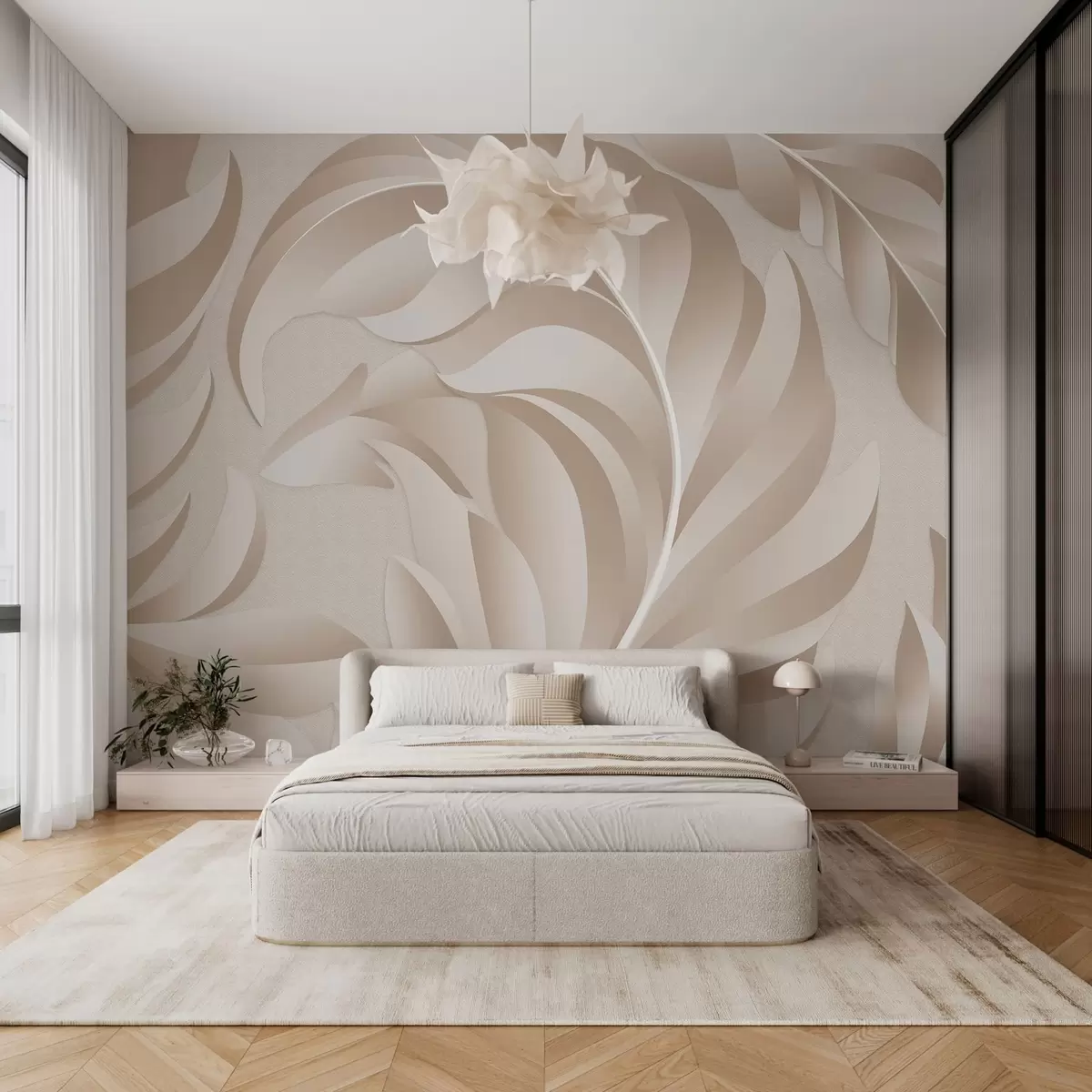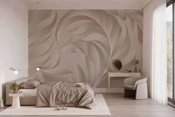 Fototapeten große strukturierte Federn in Beige- und Pudertönen N° w05231