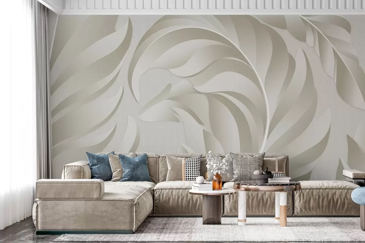 Fototapeten große strukturierte Federn in Beige- und Olivtönen N° w05231v1