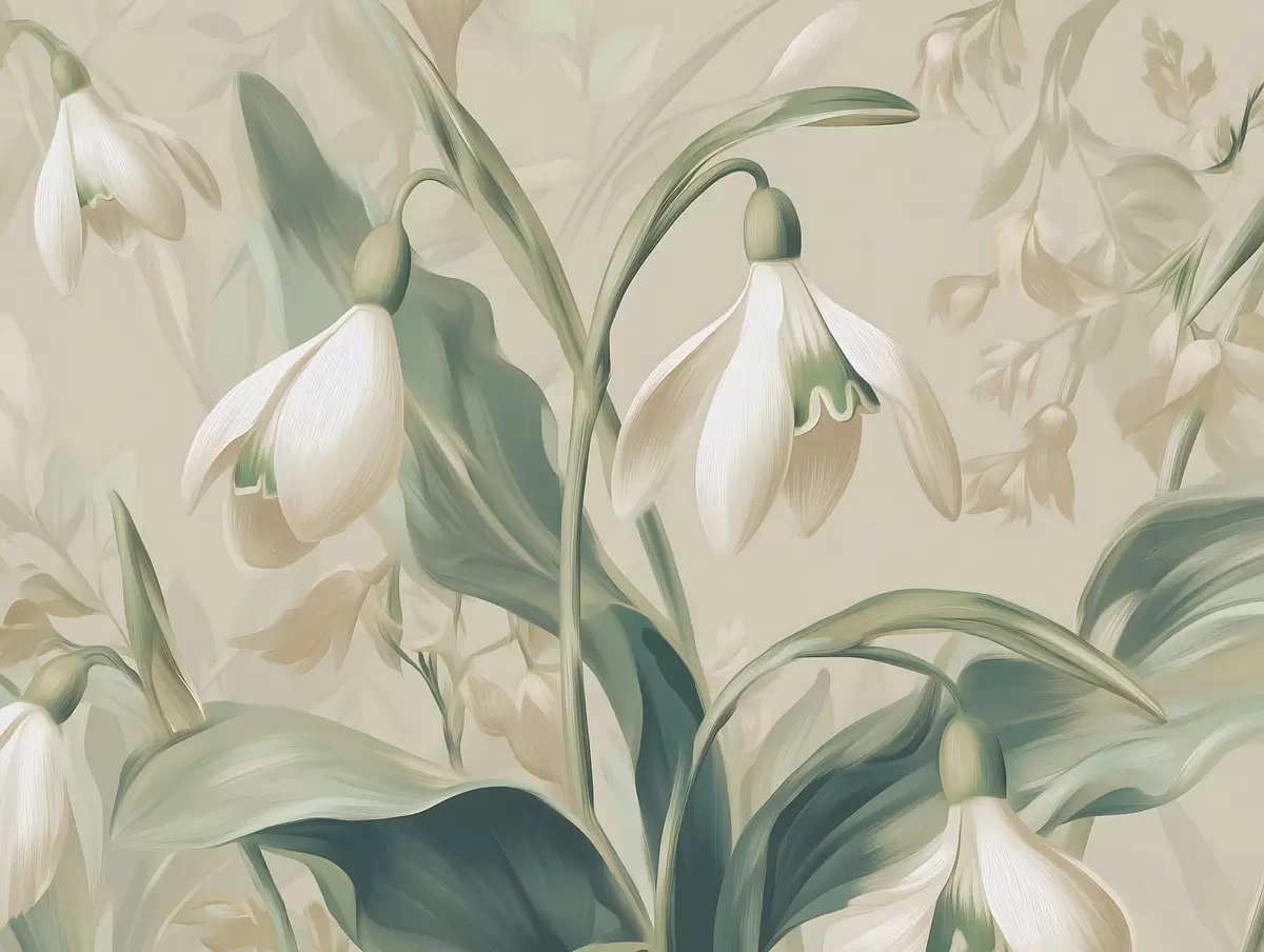 Fototapeten blühende Schneeglöckchen auf beigem Hintergrund N° w05234