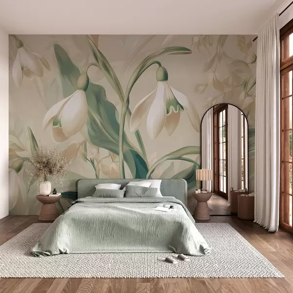Fototapeten blühende Schneeglöckchen auf beigem Hintergrund N° w05234