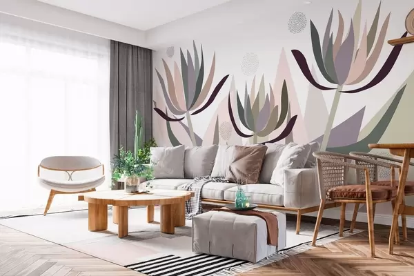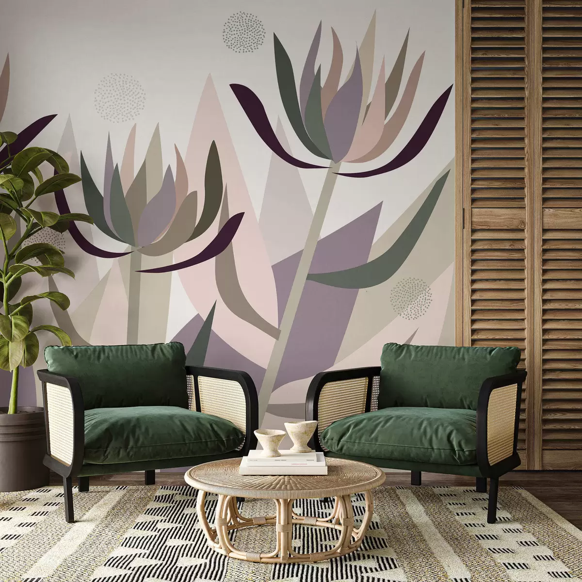 Fototapeten stilisierte Proteablüten im primitiven Stil N° w05236