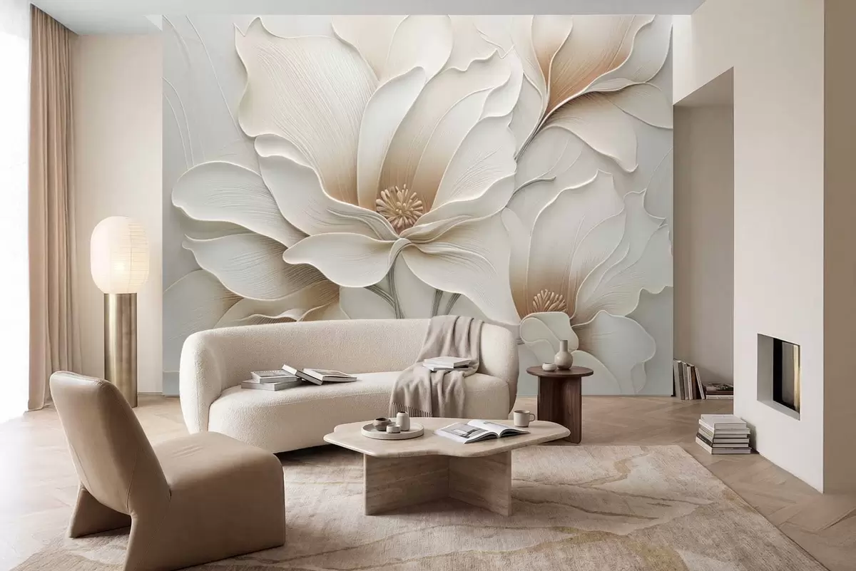 Fototapeten Geprägte beige Blumenrelief-Nahaufnahme N° w05269