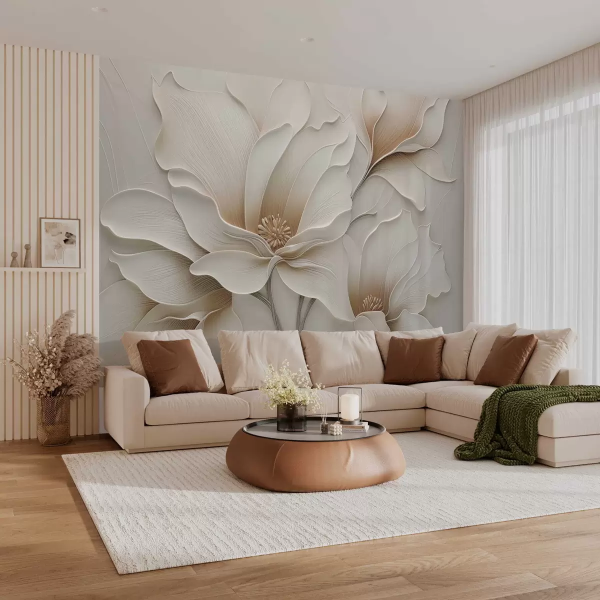 Fototapeten Geprägte beige Blumenrelief-Nahaufnahme N° w05269