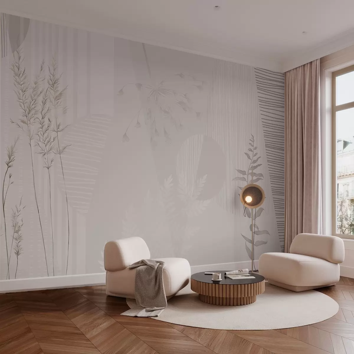 Fototapeten Minimalistische Komposition mit Gräsern und Formen N° w05318