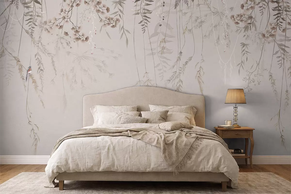 Fototapeten Zarte hängende Gräser auf hellem Hintergrund N° w05320v2