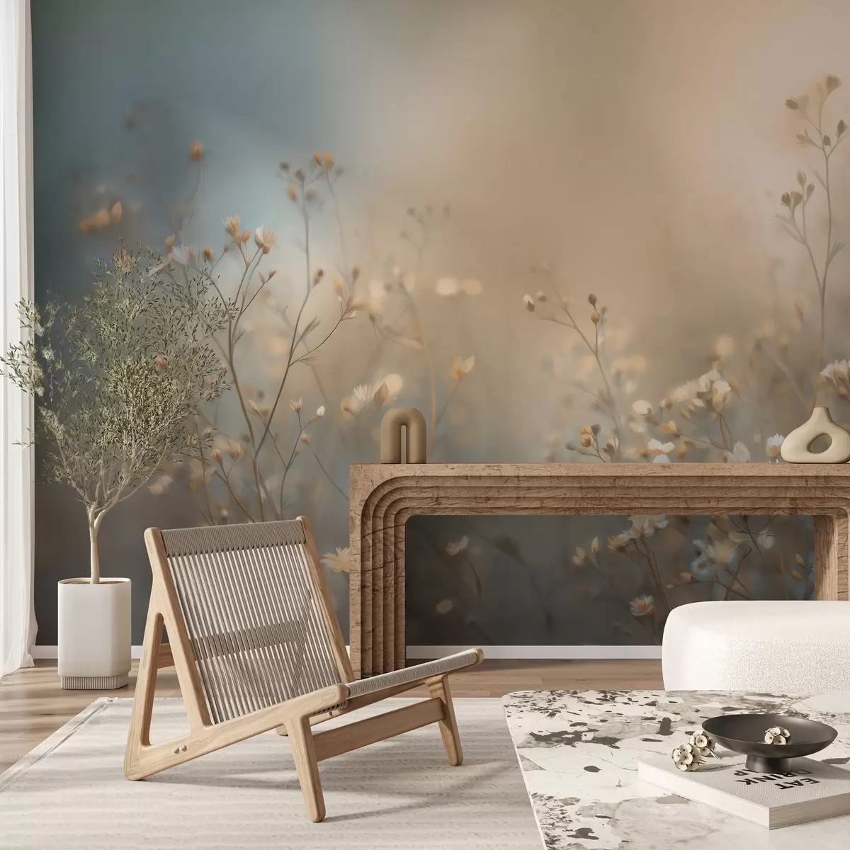 Sie können die Tapete sehr vorsichtig mit einem leicht feuchten Schwamm reinigen. Wir raten jedoch davon ab, die Tapete zu schrubben oder Reinigungsmittel zu verwenden, da dies die Oberfläche und die Farben der Tapete beschädigen kann.