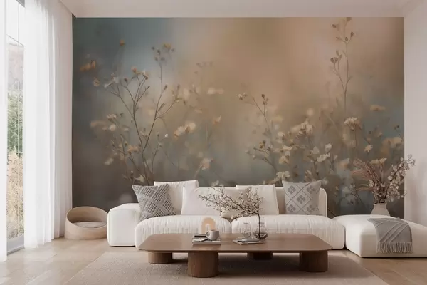 Fototapeten Wiesengräser mit kleinen Blüten vor einer geringen Schärfentiefe N° w05386
