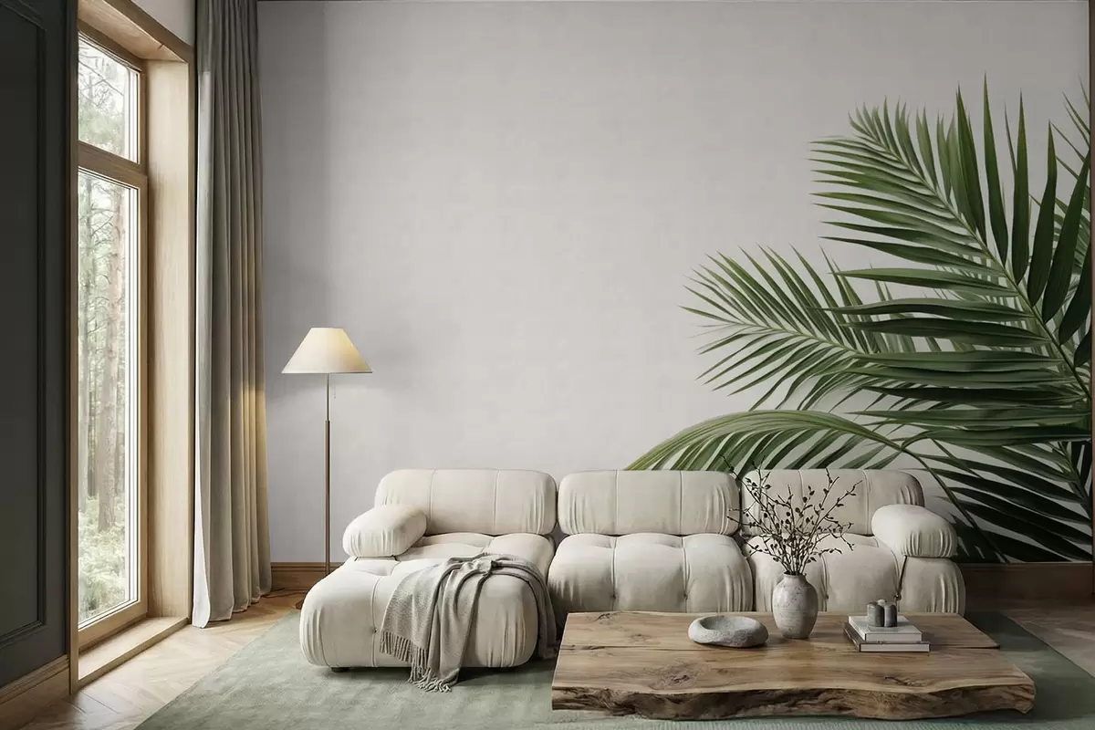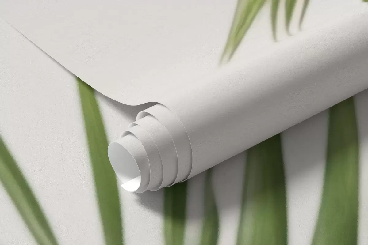 Fototapeten Grüne Palmblätter auf hellem Hintergrund N° w05391
