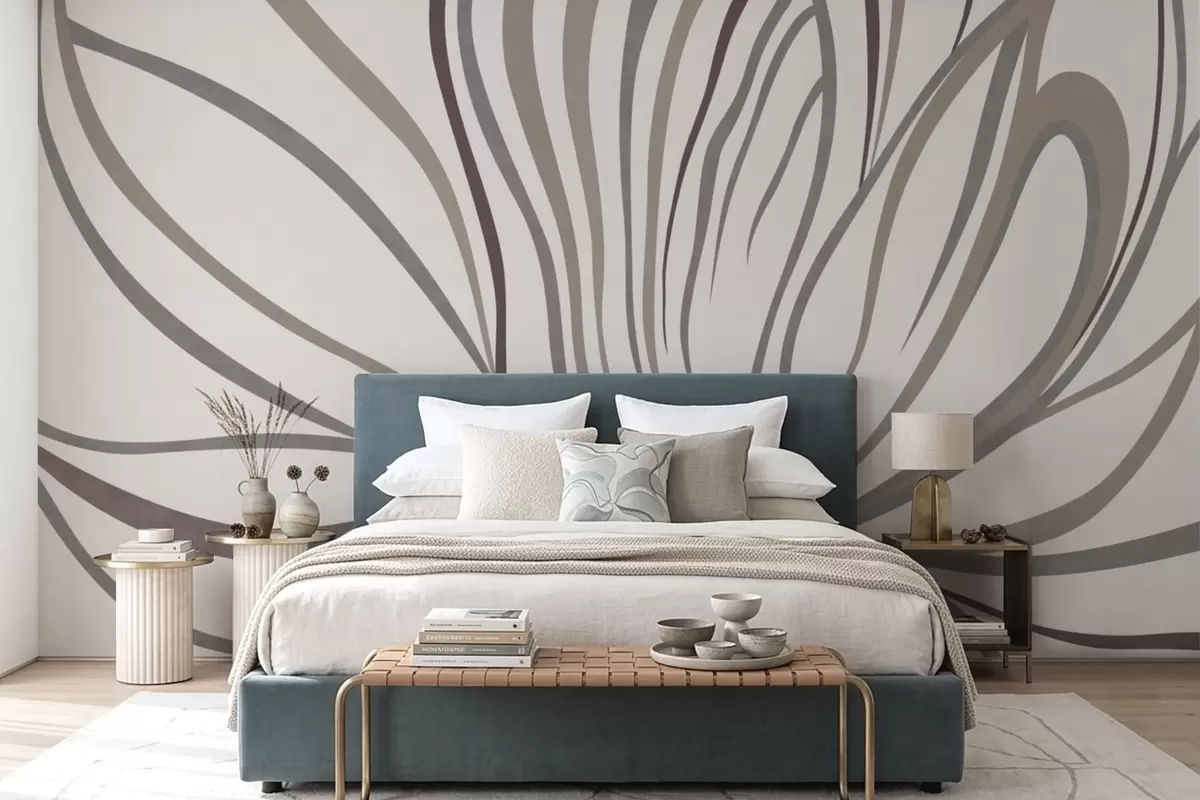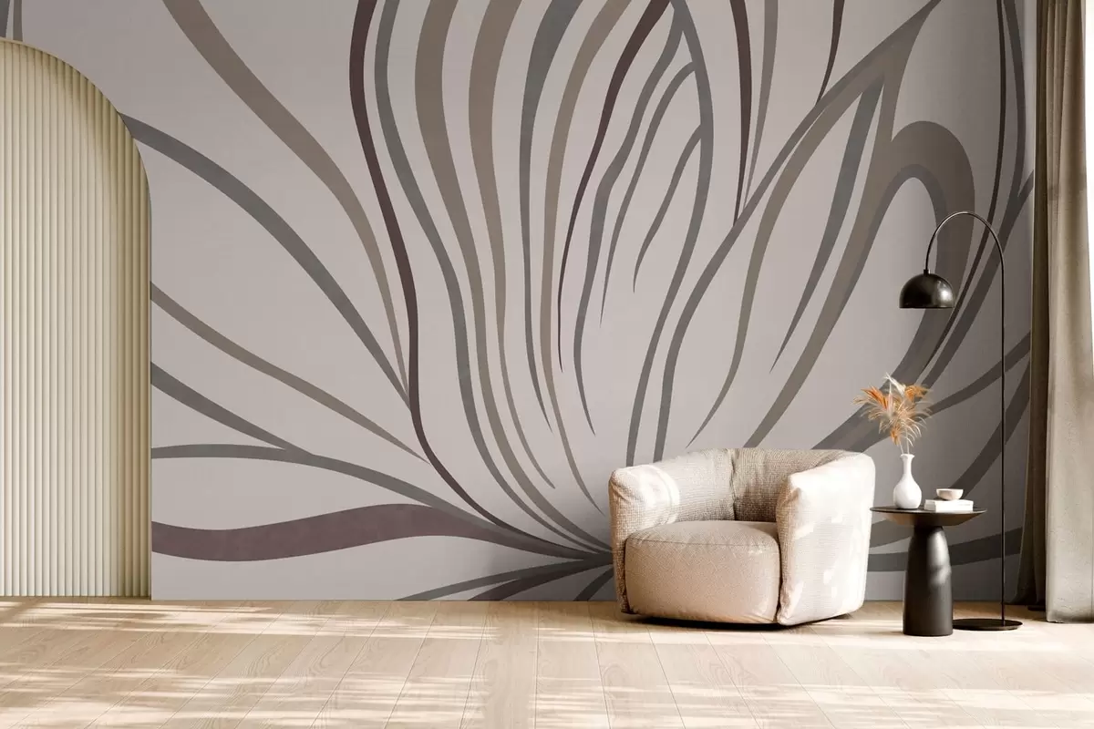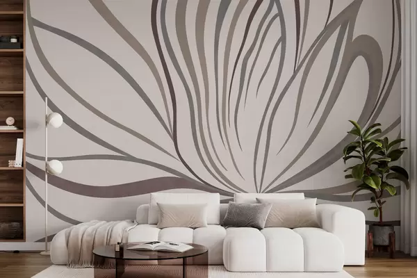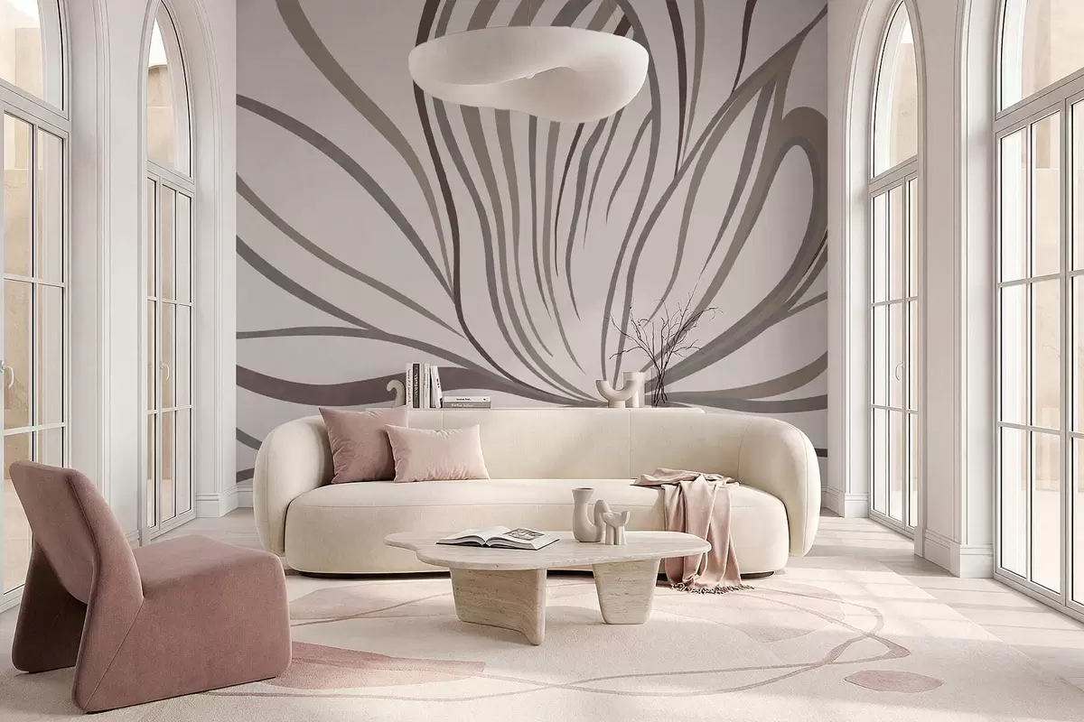 Fototapeten Abstrakte Blume mit Linien in Grau- und Rosatönen N° w05392