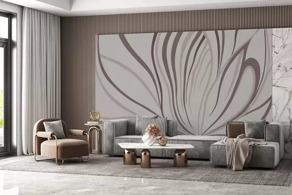 Fototapeten Stilisierte Blume mit weichen Linien in Rosa- und Beigetönen N° w05392v1