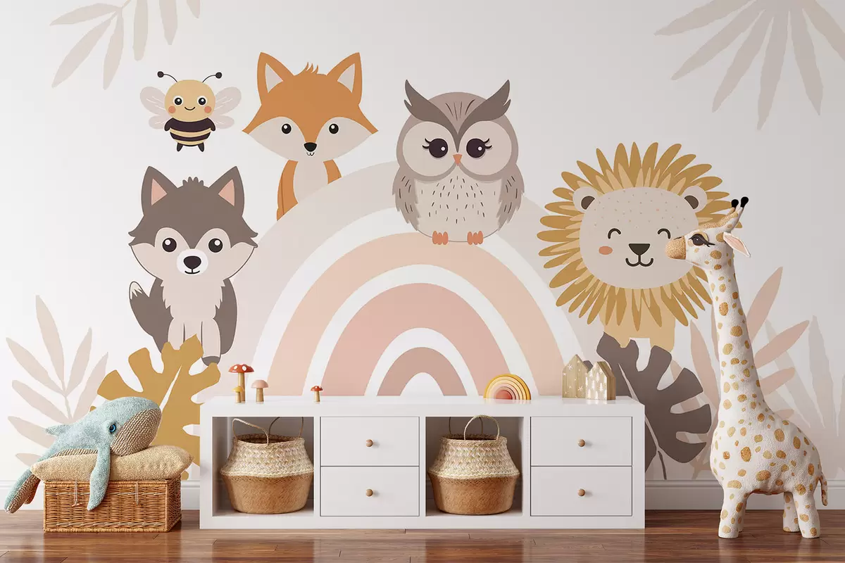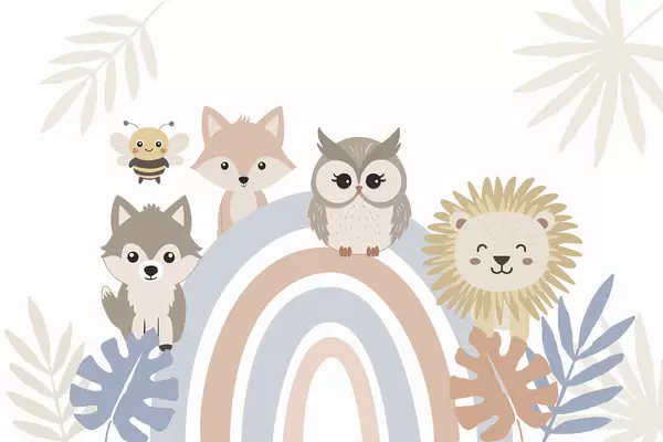 Fototapeten Süße Tiere in der Nähe des Regenbogens N° w05399