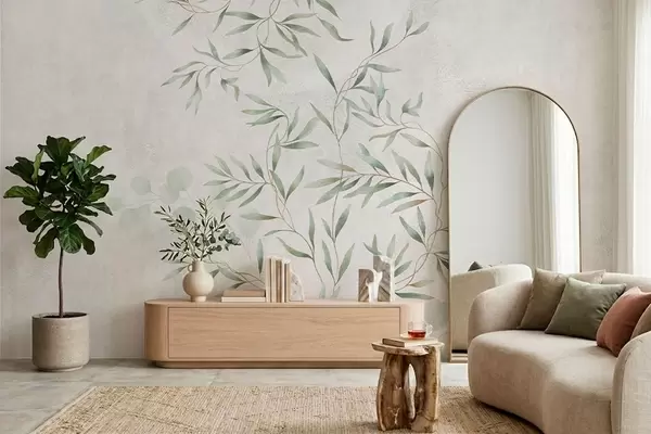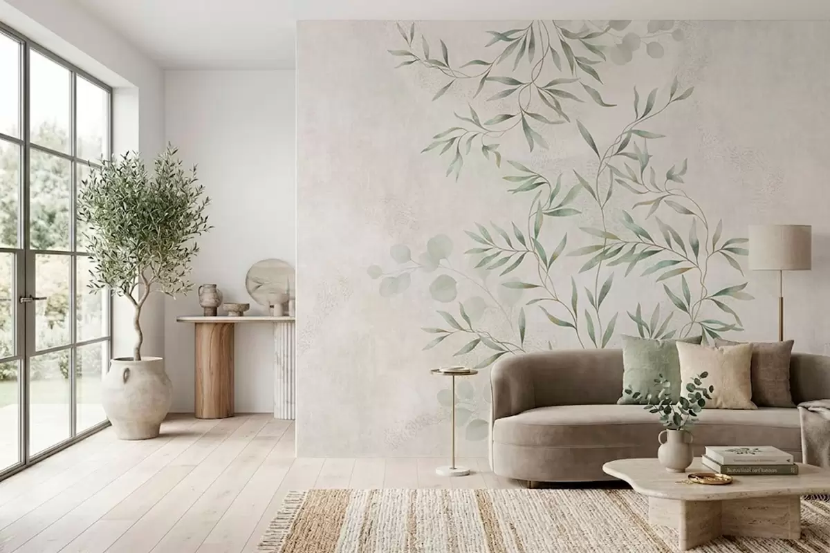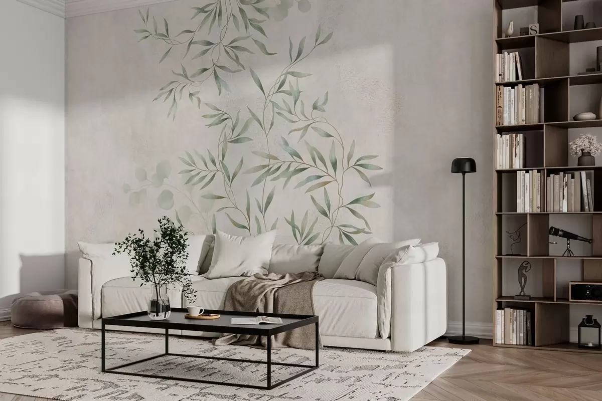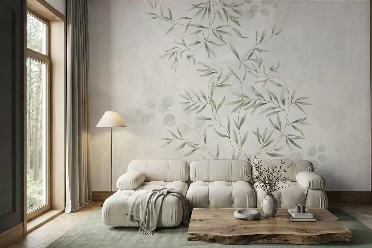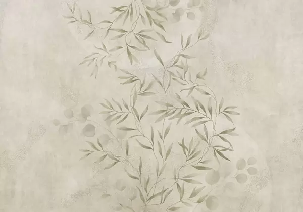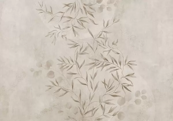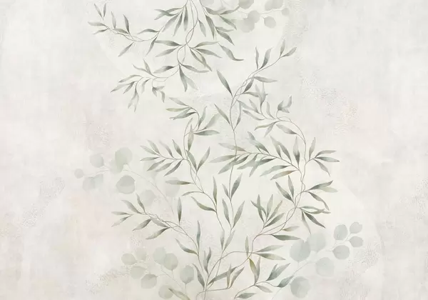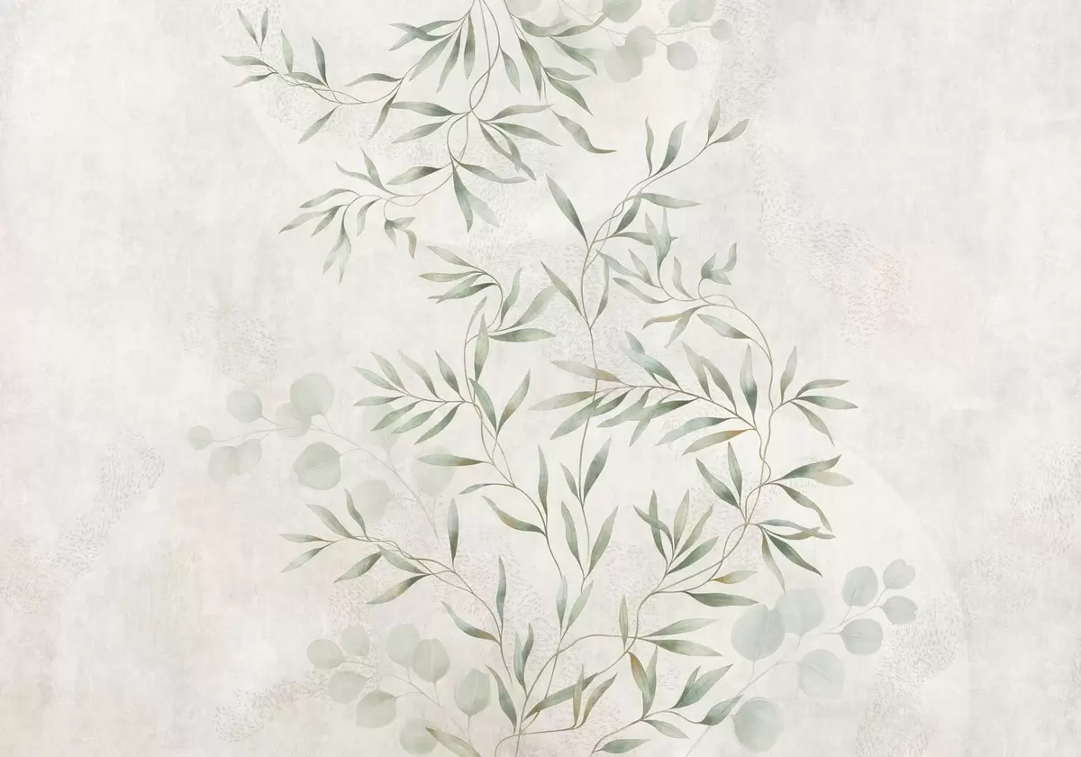 Fototapeten Zartes botanisches Muster mit feinen Zweigen auf hellem Hintergrund N° w05424