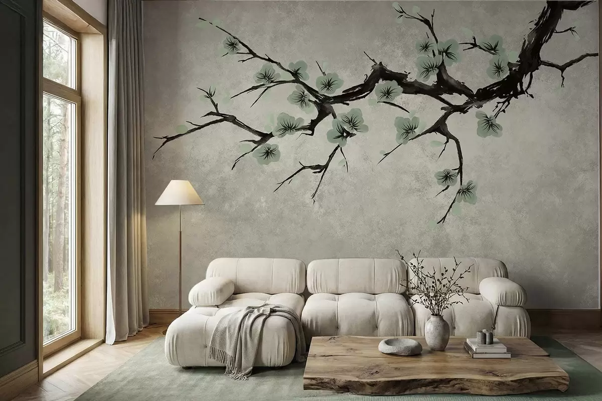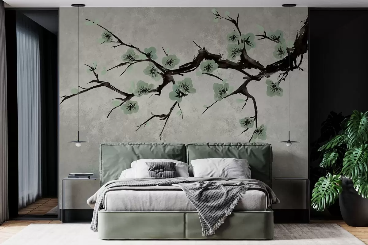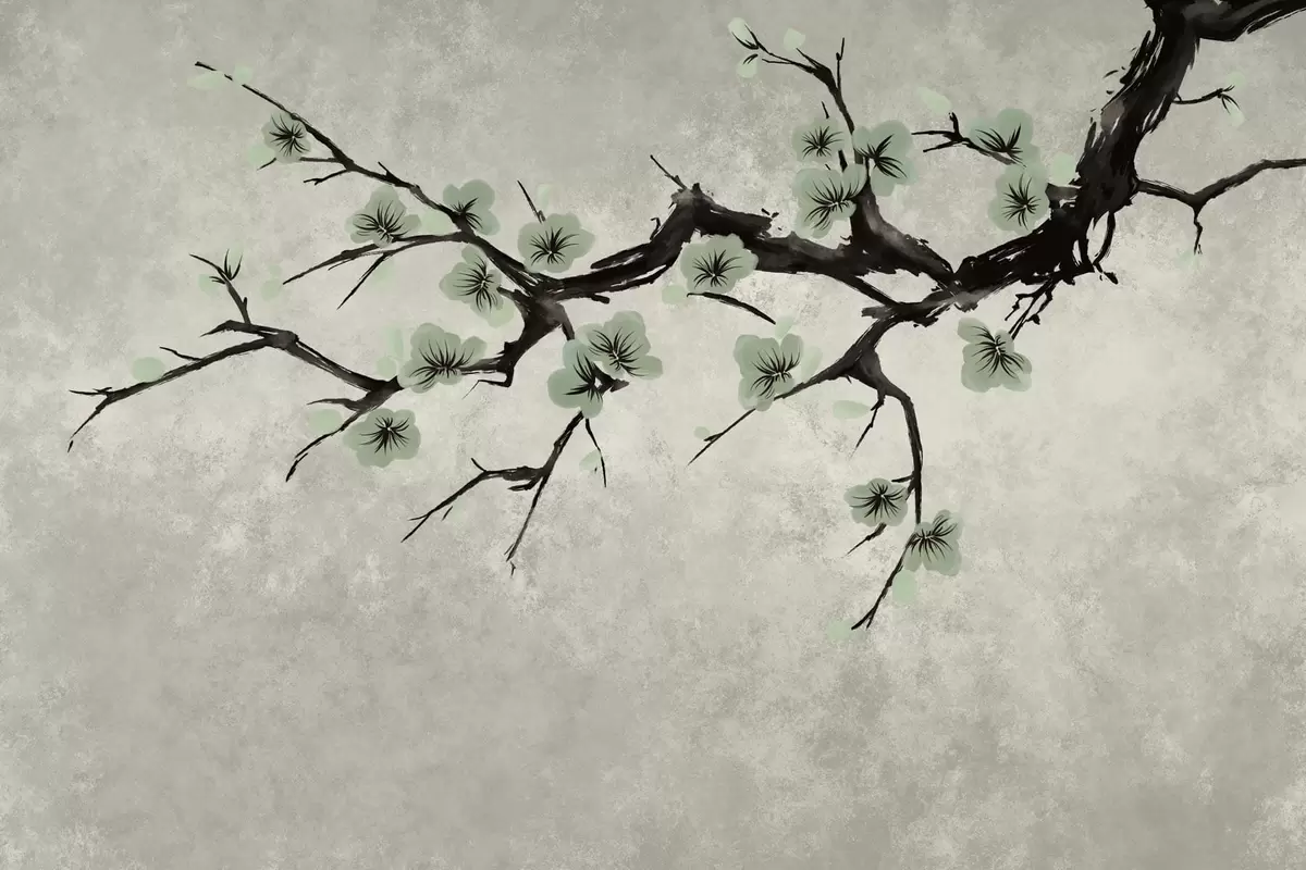 Fototapeten Zweig mit grünen Blüten in sanften Farbtönen N° w05425v2