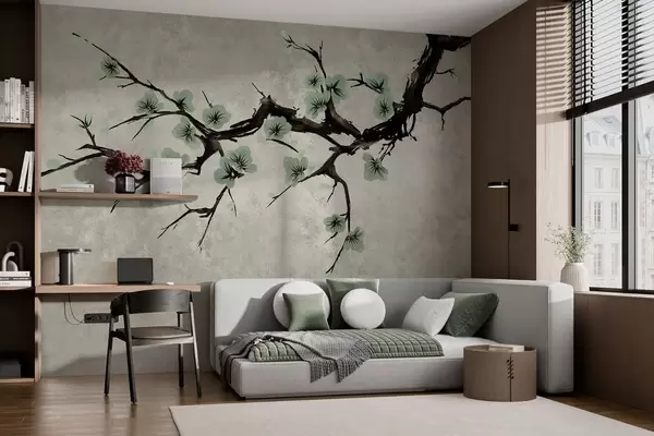 Fototapeten Zweig mit grünen Blüten in sanften Farbtönen N° w05425v2