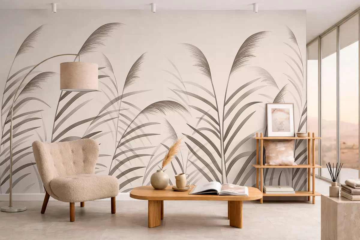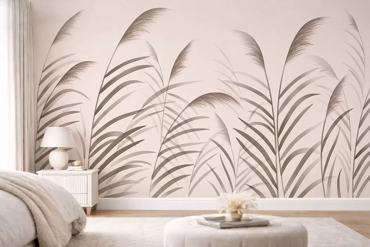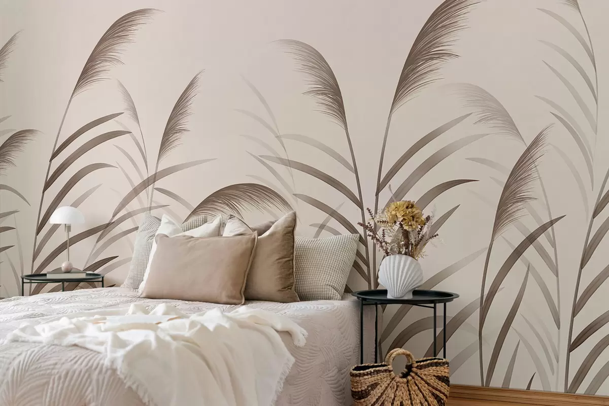 Fototapeten Minimalistische Schilfsilhouetten in Beigetönen N° w05432